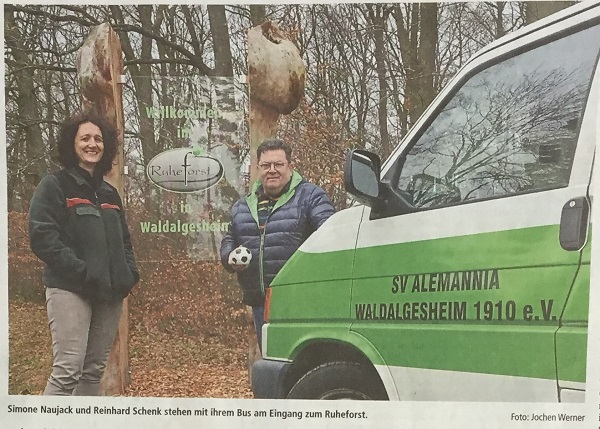 Zu Beginn der Aktion hatten Bernhard und Simone Naujack die Initiative ergriffen, wollten bei der Gemeinde klären, wie Besucher die gut zwei Kilometer lange Bergaufstrecke von der Bushaltestelle am Kreisel bis zum RuheForst zurücklegen könnten. Schenk wiederum gab zwar spontan auf Anfrage des ehemaligen Ortschefs Dr. Gerhard Hanke hin seine Zusage, musste aber erst einmal auf Vorstandssitzungen herumhören, wer ihm zur Seite stehen würde.“ Dass alles machbar ist und reibungslos gehen würde, war von Anfang an klar“, verweist Schenk auf seine „Alemannia-Familie“, die alles, was möglich ist, auch möglich macht. Dabei werde, was etwa die Abfahrtszeiten des Busses betrifft, immer Rücksicht auf den Linienbusverkehr aus Bingen und en öffentlichen Nahverkehr genommen, auch einmal eine Extrarunde gedreht. Als Simone Naujack nach vielen Anfragen nach einer Möglichkeit gesucht hatte, nicht selbst motorisierte Menschen in den RuheForst zu befördern, ging es laut Schenk nur noch um den Wochentag. Der Bus dürfte nämlich nicht von der Jugendmannschaft des SV A gebracht werden. Alles Weitere ergab sich. Auch, dass sich die Gemeinde spontan bereit erklärte, die Spritkosten zu tragen. Oder dass eine Anmeldung nach wie vor nicht erforderlich ist. „Hin und wieder fahren die Gäste mit nach oben und gehen spazieren oder laufen bei schönem Wetter wieder herunter“, weiß Simone Naujack. Darum aber kümmern sich wiederum der Fahrer und seine Stammgäste. Die sorgen gegenseitig auch dafür, dass die Zahlen steigen. Auf dass die Summe, die der Jugend der Alemannia in diesem Jahr zugutekommt höher sein möge, als die im vergangenen. Das Engagement aller stimmt. Und Reisch, erzählt Schenk, fahre auch jeden Mittwoch die Jungs und Mädels des Kindergartens zu den Waldtagen in den Forst.